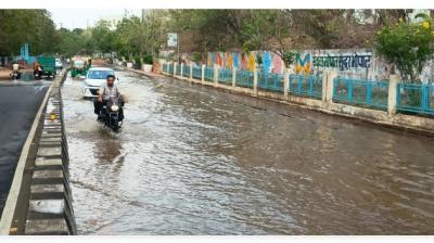भोपाल में लोक भवन के सामने सड़क धंसने से हड़कंप,...