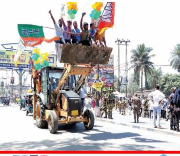 चुनावी मैदान में अनोखा अंदाज, बुलडोजर लेकर पहुंचे प्रत्याशी