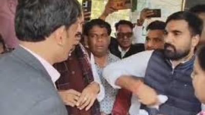 भीड़ के बीच विधायक को मुक्के और धक्का देने का आरोप