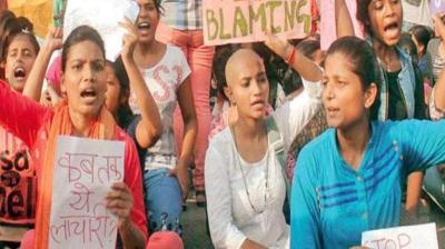 महिलाओं ने धरना दिया, भजन-कीर्तन के साथ विरोध प्रदर्शन