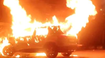 वाहन में लगी भीषण आग, पूरी तरह जलकर खाक