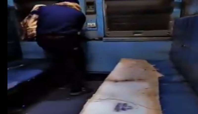 रील के लिए चलती ट्रेन में शख्स ने फाड़ा ट्रेन का सीट कवर