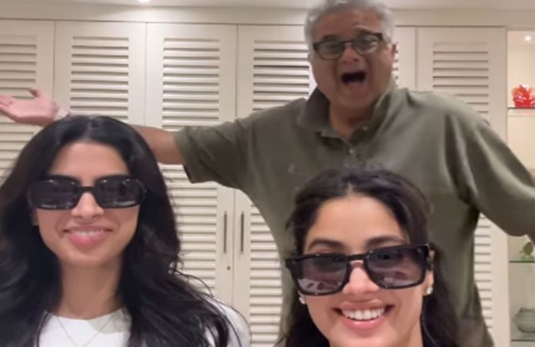 जान्हवी कपूर और खुशी कपूर का फनी वीडियो हुआ वायरल, बोनी कपूर भी दिखे साथ