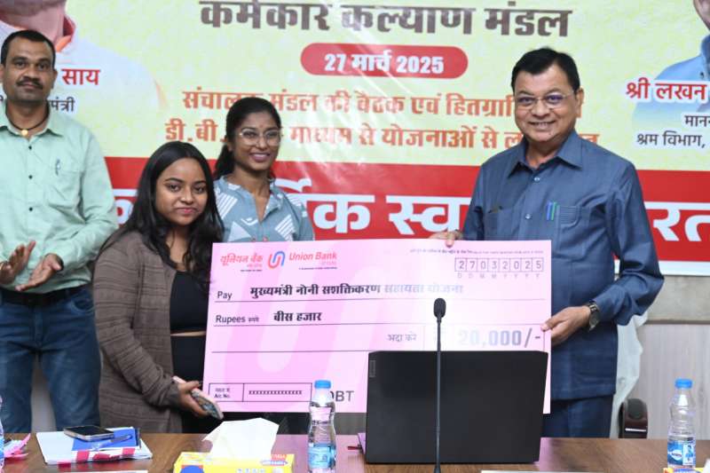 रायपुर : मुख्यमंत्री विष्णु देव साय के नेतृत्व में प्रदेश सरकार द्वारा श्रमिकों एवं उनके परिजनों की बेहतरी के लिए अनेक योजनाएं संचालित की जा रही है। इन योेजनाओं के माध्यम से श्रमिकों की सामाजिक एवं आर्थिक स्थिति के बेहतर बनाने के लिए लगातार आर्थिक मदद दी जा रही है। इसी सिलसिलें में श्रम मंत्री लखन लाल देवांगन ने आज नवा रायपुर स्थित छत्तीसगढ़ भवन एवं अन्य सनिर्माण कर्मकार मंडल कार्यालय में एक लाख 14 हजार 902 श्रमिकों के बैंक खाते में 53 करोड़ 43 लाख 74 हजार 915 रूपए डीबीटी के माध्यम से अंतरित की।