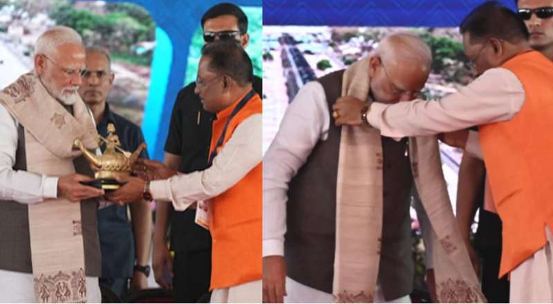 बिलासपुर: मुख्यमंत्री विष्णुदेव साय ने बिलासपुर जिले के ग्राम मोहभट्टा में आयोजित आमसभा एवं विकास कार्यों के लोकार्पण शिलान्यास समारोह में प्रधानमंत्री नरेंद्र मोदी को रविवार को एक विशेष मोमेंटो भेंट किया, जो छत्तीसगढ़ की वीरांगना बिलासा देवी केवट की स्मृति में तैयार किया गया है. यह मोमेंटो न केवल छत्तीसगढ़ की सांस्कृतिक विरासत का प्रतीक है, बल्कि नारी शक्ति, आत्मनिर्भरता और नेतृत्व क्षमता की जीवंत अभिव्यक्ति भी है.