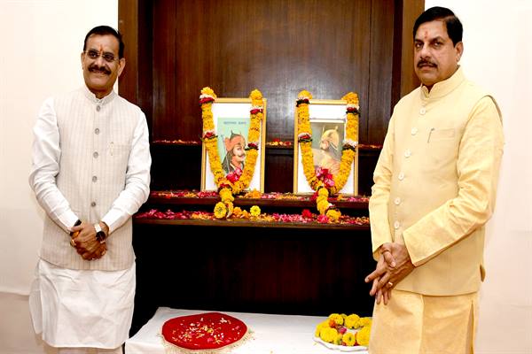भोपाल : मुख्यमंत्री डॉ. मोहन यादव ने वीर शिरोमणि महाराणा प्रताप तथा बुंदेलखंड केसरी महान योद्धा महाराजा छत्रसाल की जयंती पर मुख्यमंत्री निवास स्थित सभागार में चित्र पर माल्यार्पण कर उनका स्मरण किया। इस अवसर पर सांसद खजुराहो वी.डी. शर्मा साथ थे।