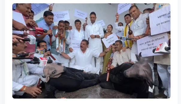कांग्रेस ने विधानसभा में भैंस के सामने बीन बजाकर किया प्रदर्शन