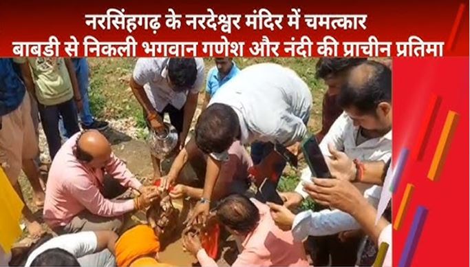 जानकारी अनुसार दमोह जिले के नरसिंहगढ़ में मराठा कालीन सदियों पुराना रामबाग स्थित नर्मदेश्वर महादेव मंदिर है। यहां बागेश्वरधाम के पीठाधीश्वर भी पहुंचे थे। मंदिर जर्जर हो चुका था, इसलिए समिति बनाकर इसका जीर्णोद्धार कराया जा रहा है। मंदिर समिति के कैलाश मिश्र को कुछ दिन से एक सपना आ रहा था कि मंदिर के पास स्थित बावड़ी के पास एक जगह पर गणेश जी की प्रतिमा दबी हुई है। पहले उन्होंने ध्यान नहीं दिया, लेकिन बाद में समिति सदस्यों को जानकारी दी थी।