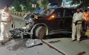 पटना हादसा: हाईवा की टक्कर से पुलिस वाहन में लगी आग