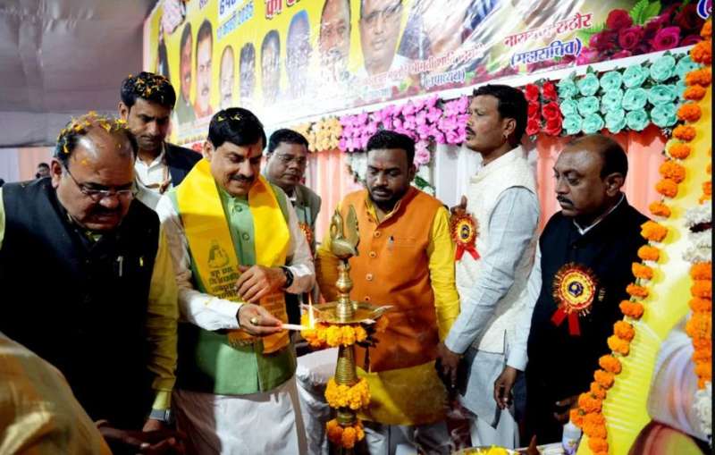 मुख्यमंत्री डॉ. यादव ने दीप प्रज्ज्वलन और कन्या-पूजन कर कार्यक्रम का शुभारंभ किया और संत रविदास के चित्र पर पुष्पांजलि अर्पित की। नवयुवक अहिरवार समाज सुधार संघ भोपाल एवं चर्मकार विकास संघ भोपाल के संयुक्त तत्वावधान में आयोजित कार्यक्रम में मुख्यमंत्री डॉ. यादव ने स्मारिका और रविदास चालीसा का विमोचन किया। मुख्यमंत्री डॉ. यादव का आयोजनकर्ताओं ने गजमाला पहनाकर स्वागत कर स्मृति-चिन्ह भेंट किया। कार्यक्रम में भोपाल महापौर श्रीमती मालती राय, भोपाल दक्षिण-पश्चिम के विधायक भगवानदास सबनानी, नगर निगम अध्यक्ष किशन सूर्यवंशी, रवींद्र यती और समाज बंधु उपस्थित थे।