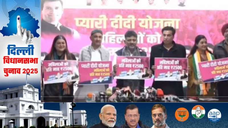 नई दिल्ली। दिल्ली विधानसभा चुनाव के मद्देनजर कांग्रेस ने महिलाओं के लिए बड़ी घोषणा की है। कांग्रेस ने दिल्ली की महिलाओं के लिए प्यारी दीदी योजना का ऐलान किया है। इस योजना के तहत दिल्ली की महिलाओं को हर महीने 2500 रुपये मिलेंगे। कर्नाटक के उपमुख्यमंत्री डीके शिवकुमार, प्रदेश अध्यक्ष देवेंद्र यादव, राष्ट्रीय महिला कांग्रेस अध्यक्ष अलका लांबा, प्रदेश महिला अध्यक्ष पुष्पा सिंह व राष्ट्रीय प्रवक्ता रागिनी नायक ने संयुक्त रूप से योजना को जारी किया है।