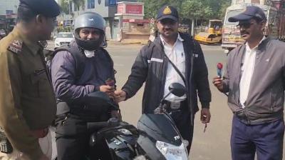 स्कूटर सवार को रोका, नियमों का दिया पाठ — बुजुर्ग महिला का सम्मान