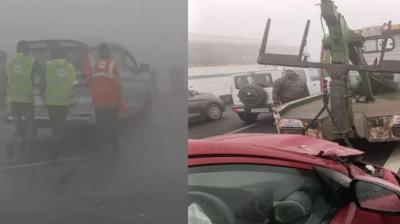 गाजियाबाद में घने कोहरे के कारण हाइवे पर चार जगह भिड़ीं कई गाड़ियां