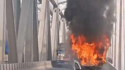 पटना के महात्मा गांधी सेतु पर बस में लगी भीषण आग, यात्रियों ने कूदकर बचाई जान