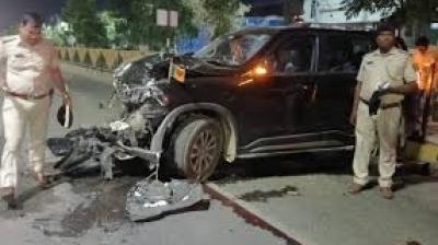 पटना हादसा: हाईवा की टक्कर से पुलिस वाहन में लगी आग